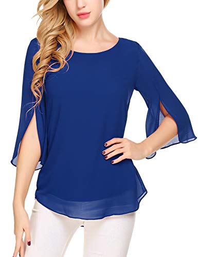 Beyove Camicetta da donna a maniche lunghe in chiffon a 3/4 con scollo rotondo