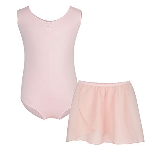 Bezioner Body per Danza Cotone Balletto Leotards Ginnastica Senza Maniche per Ragazze e Donne (120 (110-120 cm,6-7 Anni), Rosa con Gonna)