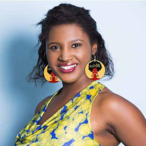✿Leggero e chic: realizzato in legno e materiale in lega, ogni orecchino penzolante da donna africano è leggero e sicuro per le orecchie, non apporterà molto peso alle orecchie, non è facile causare irritazioni alla pelle, facile da mettere acceso e decollare per l'uso quotidiano.