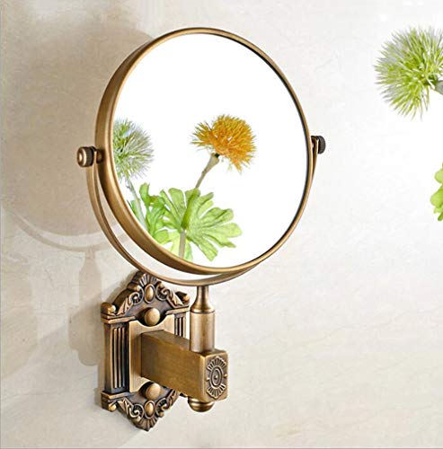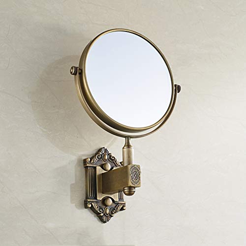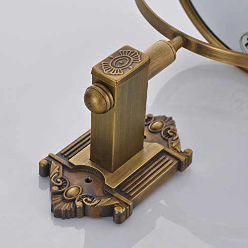 BFDMY Ottone Antico Bifacciale Specchio per il trucco Lente d'Ingrandimento 3X e Specchio Piatto Specchio Ingranditore Girevole da Parete Retrò intaglio per Bagno,Antiquemirror