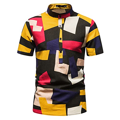 BFSGBFNTMD Camicie Casual da Uomo A Maniche Corte con Colletto alla Coreana da Uomo Camicie Larghe Floreali da Uomo