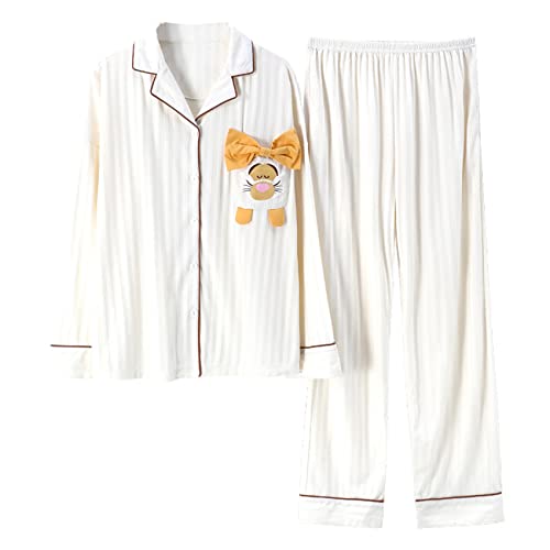 BFSGBFNTMD Pigiama Primaverile E Autunnale da Donna in Puro Cotone A Maniche Lunghe in Puro Cotone con Risvolto Cardigan da Donna per Servizio A Domicilio