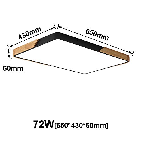 [Dimensioni e materiali] Materiale: metallo e rovere, colore: nero guscio, potenza: 72 W, temperatura colore: con telecomando (3000 K-6500 K), dimensioni: 650 x 430 x 50 mm, Lumen: 5760 lm, angolo di irradiazione: 120°, tensione: 160 V-265 V, 50 Hz.