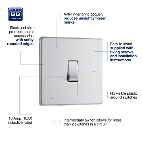 Bg-nexus-flat-plate senza viti piastra piatta 10 A singolo interruttore luce intermedio, grigio
