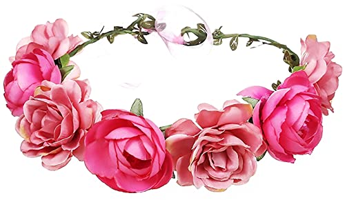 Bgfuni Fiori Corona Fascia Capelli, Coroncine Fiori per Capelli, Corona di Fiori e Fascia, Fasce del Fiori Regolabile, Le Ragazze/Bohémien Copricapo da Sposa per Festa di Nozze Spiaggia (Rosso acqua)