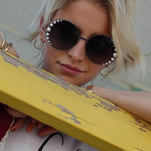 BGPOM Occhiali da Sole Rotondi con Montatura Grande Occhiali da Sole con Perle Ocean Film Occhiali da Sole da Donna Street Photo