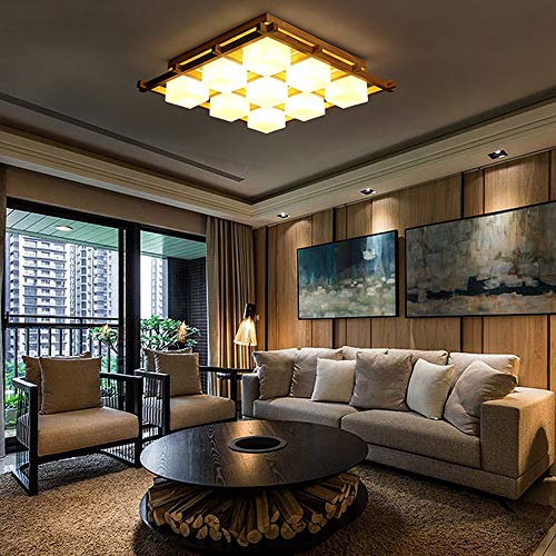 Bhesky Tatami Giapponese Lampada del soffitto, Moderna in Legno Massiccio a Scacchi for Bambini in Camera E27 Nuovo Stile Cinese Soggiorno Camera da Letto della Lampada (Color: 9 Heads)