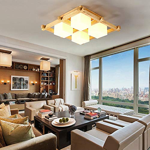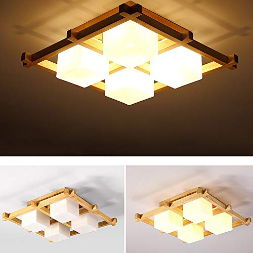 Bhesky Tatami Giapponese Lampada del soffitto, Moderna in Legno Massiccio a Scacchi for Bambini in Camera E27 Nuovo Stile Cinese Soggiorno Camera da Letto della Lampada (Color: 4 Heads)