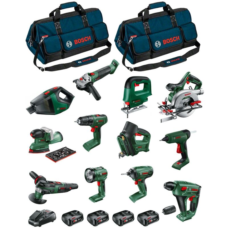 BOSCH HG Kit BHGK1200 Martello Perforatore BOSCH HG Uneo Maxx 18 LI - Potente e compatto, il Martello Perforatore a batteria Uneo Maxx è progettato per le attività più complesse di martellatura, foratura e avvitatura su calcestruzzo, muratura, metallo, legno e piastrelle - Il meccanismo a percussione Bosch insieme al potente motore consentono una perforazione rapida e semplice nel calcestruzzo fino a una profondità di 10 mm - Dispone di un mandrino SDS per un funzionamento intuitivo e un rapido cambio di tutti i bit esadecimali da 1/4 e i bit SDS in 3 secondi - Questa centrale elettrica da 1,4 kg si comporta come un pesce nell'acqua in spazi ristretti ed è in grado di affrontare qualsiasi progetto con facilità - POWER FOR ALL: una batteria ed un caricabatterie per un'intera gamma di utensili Home & Garden Smerigliatrice BOSCH HG AdvancedGrind 18 - Libertà senza fili e maneggevolezza ottimale per varie attività fai-da-te - Il potente motore e la preselezione del numero di giri offrono