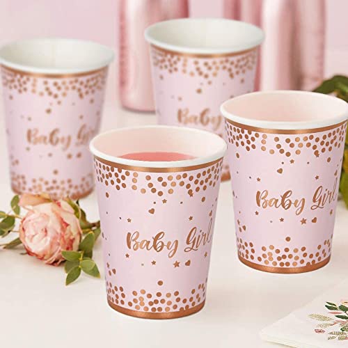 【Design Unico】: Le stoviglie per le feste sono decorate con sfondo rosa, font in lamina di alluminio per bambina in oro rosa e decorate con stelle a cinque punte e cuori d'amore. Questi piatti rosa sono un must per la festa.