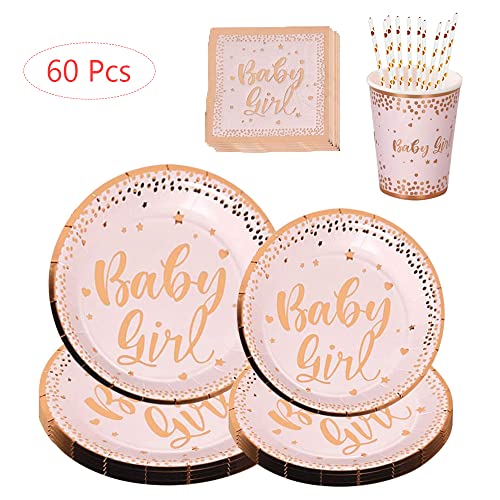 Bhina 60 Pezzi Piatti Feste Compleanno Ragazze,Tovaglioli Tazze Piatti Compleanno,Set Stoviglie Compleanno Rosa,Adatto Per Feste Di Compleanno Per Ragazze,Addio Al Nubilato,Matrimoni,Baby Shower