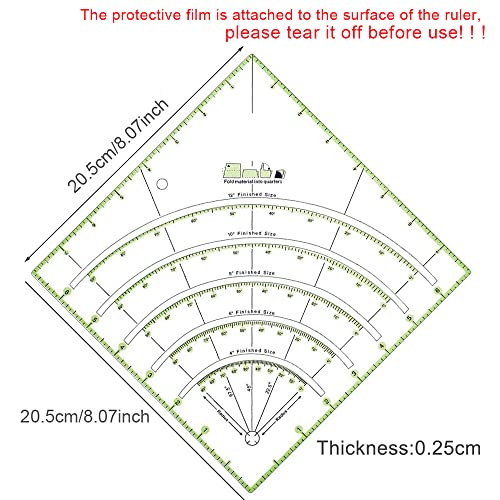 Ampia gamma di applicazioni: Molteplici modalità di utilizzo. Adatto a tutti i tipi di patchwork, cucito, modelli, modelli di cucito e artigianato.(La pellicola protettiva è attaccata all'esterno del righello, si prega di strapparla prima dell'uso!)