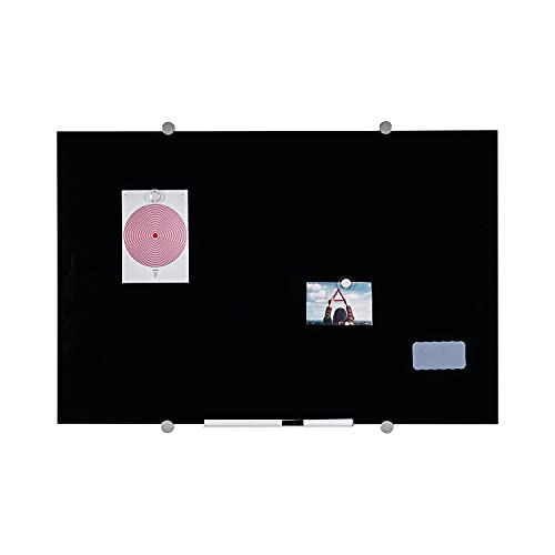 Bi-Office Flow Lavagna Magnetica In Vetro, Cancellabile a Secco, Colore Nero, 90x60cm