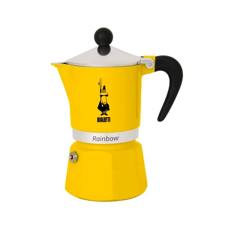 La Caffettiera Moka Rainbow Gialla di Bialetti è una caffettiera colorata che porta subito il buon umore in cucina! La linea Rainbow è infatti la linea di Bialetti ispirata alla creatività, per un risveglio sempre con allegria! Scegli la caffettiera del colore che più rispecchia la tua personalità! Lo sapevi che usare la Moka è uno dei modi più sostenibili di fare il caffè ? I fondi del caffè sono rifiuti 100% organici e possono essere riciclati nell'umido o utilizzati come compost per le piante;