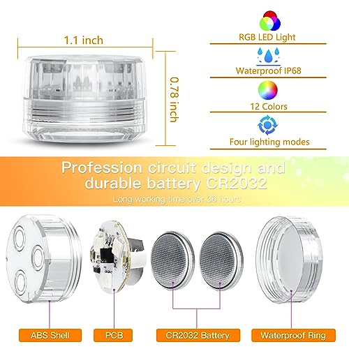 【Facile da usare】:D la luce del tè è facile da usare e può essere accesa e spenta tramite telecomando, permettendoti di scegliere il tuo colore o stile preferito. Il pacchetto include: 9 * luci LED sommergibili, 18 * batterie CR2032 incluse e 1 * telecomando.