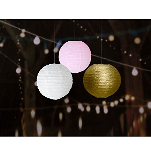6pcs lanterne di carta di 8 pollici di diametro: 2 * oro + 2 * rosa chiaro + 2 * bianco;