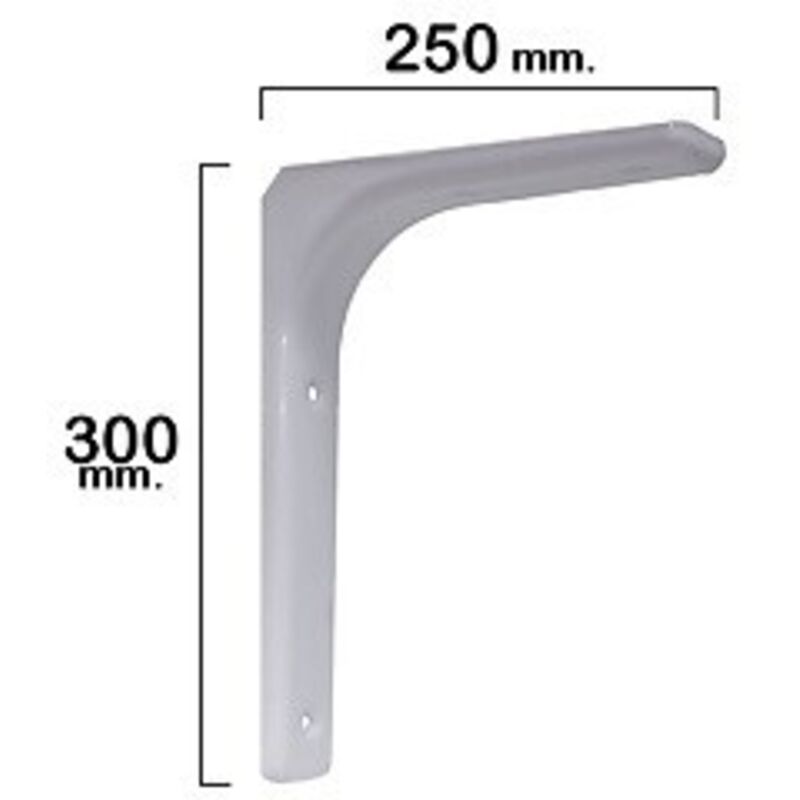 Staffe rinforzate bianche - Misura: 300x250 mm. - Realizzate in metallo. - Verniciate bianche. - Articolo noto anche come: quadrato, angolare, reggimensola, reggimensola a parete, reggimensola a parete, far.