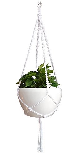 Biancaneve Macrame Plant Hanger a forma di vaso in nylon Cord 4 gambe 129,5 cm per interni ed esterni, soggiorno, cucina, Deck, patio, alta e bassa a soffitto e perfettamente rotonda e quadrata vasi di dimensione 10 - 30,5 cm senza la