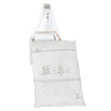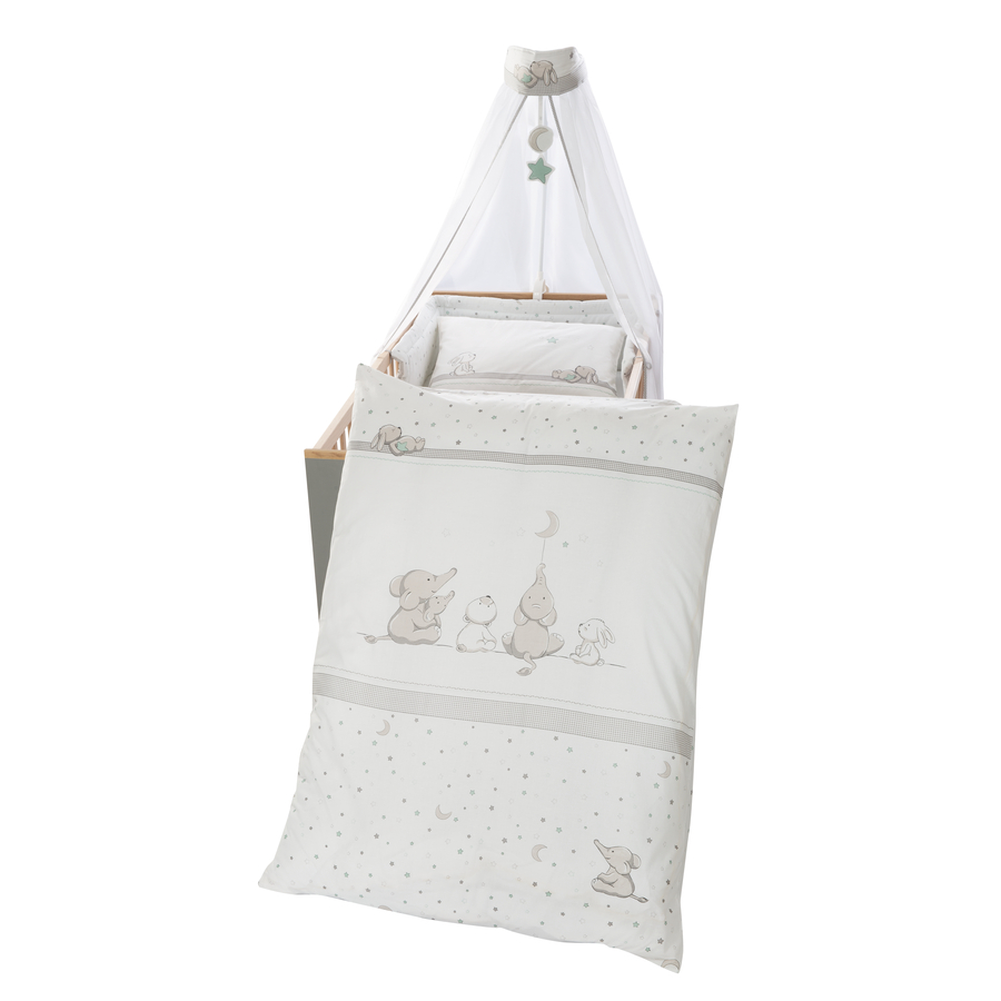 Con questo set per lettino di roba il tuo piccolo tesoro sarà come sulle nuvole. I bambini, in particolare, hanno un grande bisogno di coccole e di amore. 4 pezzi di alta qualità, il lettino per bambini è facile da curare ed è piacevolmente morbido. Il paracolpi, stampato con motivi miffy®, offre al vostro bambino sicurezza nella zona della testa. Il baldacchino, che fa parte del corredo, offre un'atmosfera di benessere ed è un highlight visivo nella stanza del bambino, accanto alla biancheria da letto stampata con i coniglietti miffy®. I materiali del lettino sono adattati alle esigenze della pelle delicata del bambino. Materiali testati e certificati. Regolarmente testati dal produttore. Dettagli tecnici: Set culla 4 pezzi Fodera cuscino: 40 cm x 60 cm Copripiumino: 10 cm x 135 cm Paracolpi: ca. 32 cm x 170 cm Materiale e cura: Federa cuscino e federa piumino: 100% cotone Paracolpi: Rivestimento 100% cotone / Imbottitura 100 % poliestere Velo baldacchino: 100% poliestere Lavabile a 40°C Capo adatto all'asciugatrice