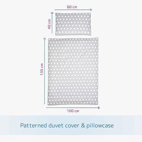 Set di biancheria da letto per bambini, 3 pezzi, copripiumino, federa e lenzuolo con angoli, per lettino da 140 x 70 cm, colore: grigio a pois