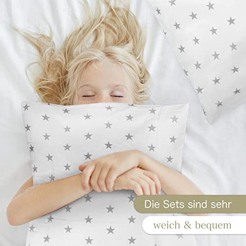 Biancheria da letto per bambini con stelle, colore grigio con stelle bianche, 2 pezzi In cotone 100%, 40 x 60 + 100 x 135 cm con cerniera.