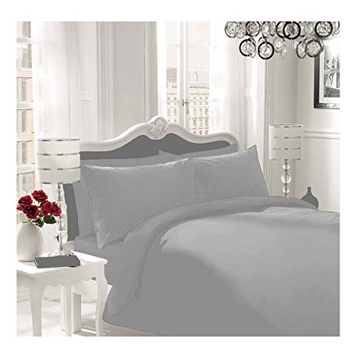 Set biancheria da letto (copripiumino + 2 federe), in pregiato percalle di cotone, tinta unita, senza stiro, Silver, Doppio
