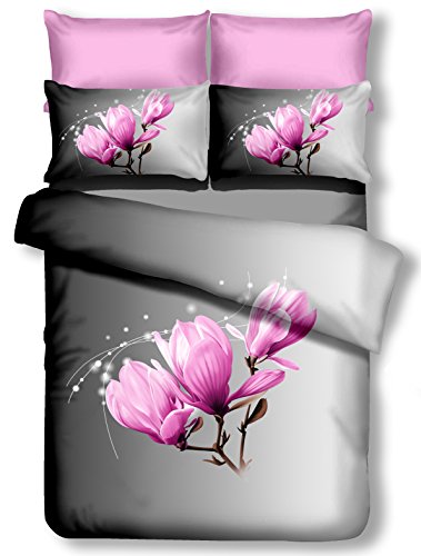 Biancheria da letto con cuscino 80 X 80 Grigio 3d in microfibra completo letto lenzuola fiori motivo floreale viola rosa pink lilac Bianco White Antracite Acciaio grafite Steel Grey Magnolia, Microfibra, Grau, 200 x 200