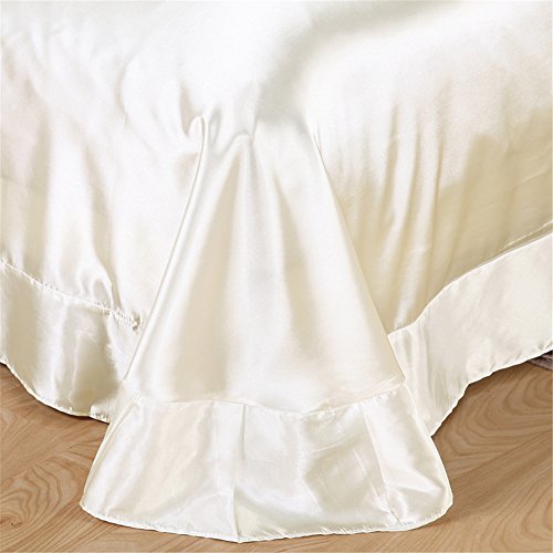 Set di biancheria da letto di finto raso, include 1 copripiumino, 1 lenzuolo e 2 federe, White, King