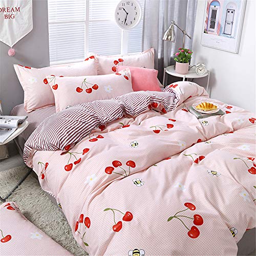 Set Biancheria da Letto Matrimoniale, Morbuy FruttaSet Copripiumino in Microfibra de 4 Pezzi con Lenzuola Piane e 2 federe (150x200cm/1.5M,Ciliegie)