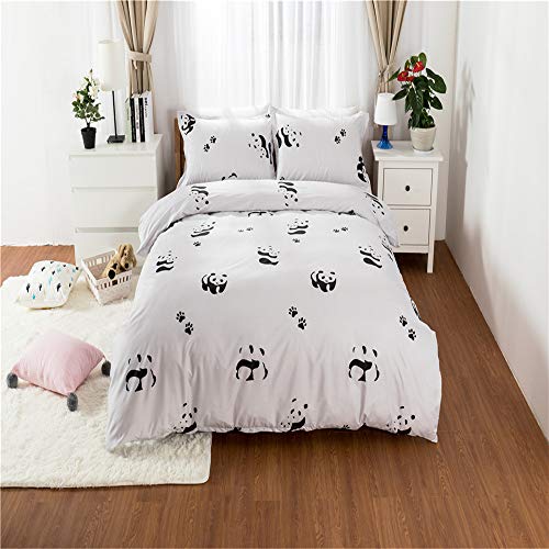 Set di Biancheria da Letto Matrimoniale de 4 Pezzi, Fansu Set Animale Bello Copripiumino per Letto Matrimoniale Chiusura a Zip con Lenzuola Piane e 2 federe (200x200cm,Panda - Bianco)