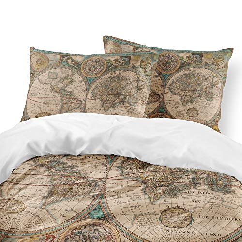 ❤ Biancheria da letto stampata in 3D a Multicolor vintage mappa del mondo.Tessuto in poliestere microfibra di alta qualità per comfort, resistenza alla polvere e alle rughe. Si noti che l'immagine stampa solo una pagina.