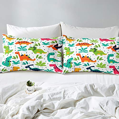 Set di Biancheria da Letto con Stampa di Dinosauri Cartoni Animati Lenzuolo con Angoli con Animale Grazioso Set di Lenzuola a Pois, per la Stanza 2 Pezzi Lenzuola Singole