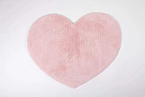 Biancheria Store Tappeto A Forma di Cuore 55x70 cm 100% Cotone | Tappeto Scendiletto Cuore Morbido | Lavabile in Lavatrice - Rosa