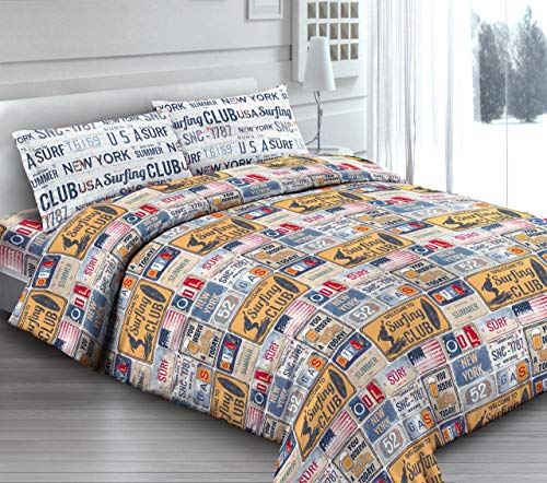 Biancheriastore Completo Lenzuola in Calda Flanella 100% Cotone Ragazzi Cameretta - Letto Piazza e Mezza - Vintage