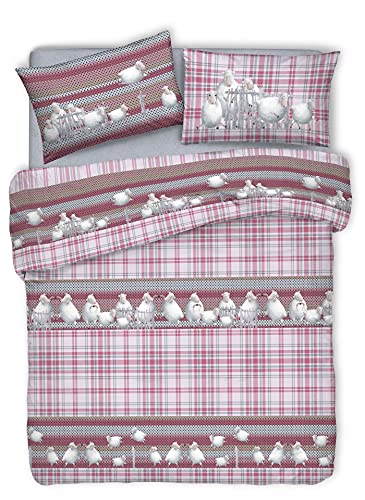 Biancheriastore New style at home Parure Copripiumino Stampa Fantasia Pecorelle Scozzese 100% Cotone Made in Italy | Set Sacco Copri Piumino e Federe | - Matrimoniale - Rosa