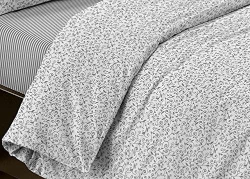 BIANCHERIAWEB Completo Lenzuola Letto Piazza e Mezzo 130x200cm +25cm Angoli Elastici, Lenzuolo Sopra 180x290cm, 1 Federa Bottoni Laterali 50x80cm, 100% Cotone, Made in Italy, Fantasia Stefy Grigio