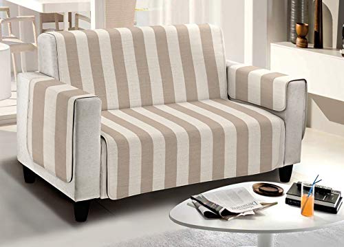 2 POSTI - Il Set Copridivano 2 Posti Fantasia Riga Larga Beige Comprende: 1 Coppia Di Copribraccioli 60x65cm L'Uno,1 Copriseduta (Interna Ai Braccioli) Di 140cm Con Altezza Totale Del Tessuto Per Seduta E Schienale Di 140 cm. La Protezione Divano Vischio E' Comodamente Lavabile In Lavatrice A 40° Ed E' Possibile Stirarla A Basse Temperature;