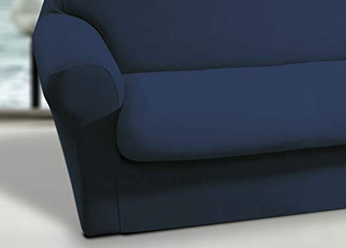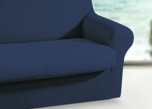 ELASTICIZZATO - Copridivano E Copripoltrona Sagomato In Tinta Unita Colore Blu Con Ottima Vestibilità Grazie Al Tessuto Bielastico, Elasticizzato Ed Estensibile Sia In Verticale Sia In Orizzontale In Modo Che Si Adatti Al Meglio Alla Struttura Del Sofà. Tessuto Copertura Divano E Poltrona 97% Poliestere E 3% Spandex