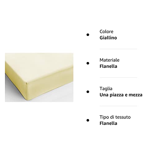 BIANCHERIAWEB Lenzuolo Sotto con Angoli una Piazza e Mezza, Coprimaterasso in Cotone Flanellato Giallino, Lenzuolo 100% Made in Italy, Adatto a Letto 120x200 cm, Lavabile in Lavatrice
