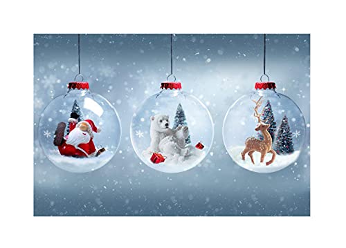 ANTISCIVOLO - Tappeto Passatoia Da Cucina Disegno Natalizio Palline Natale Neve Con Babbo Renna E Orso Misura 50x115cm Con Sottofondo Antiscivolo In PVC 600 gr/mq. Il Tappeto Cucina Aderisce Perfettamente Alla Superficie Evitando Scivolamenti