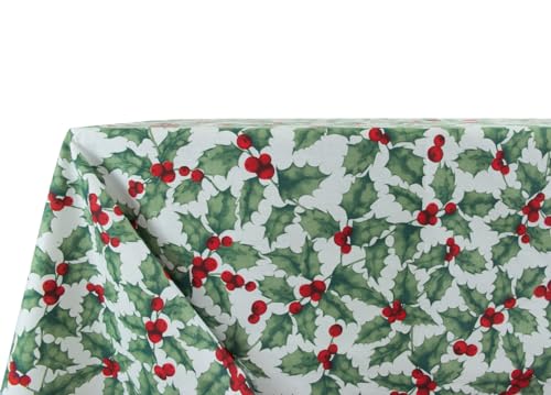 BIANCHERIAWEB Tovaglia Natalizia Cucina Soggiorno In 100% Cotone Disegno Agrifoglio Natale 140x180 Agrifoglio