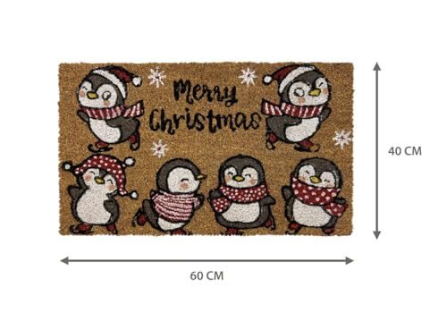 MODERNO - Tappeto Natalizio Ingresso Zerbino Natale In Cocco In Moderna E Simpatica Fantasia Dal Design Innovativo Ideale Per Portare La Magia Del Natale In Casa. Disegno Con Pinguini E Scritta Merry Christmas