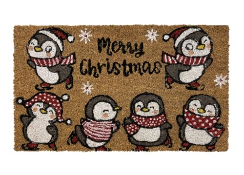 BIANCHERIAWEB Zerbino Natale Cocco Ingresso Casa Esterno Antiscivolo Natalizio Fortuna Pinguini