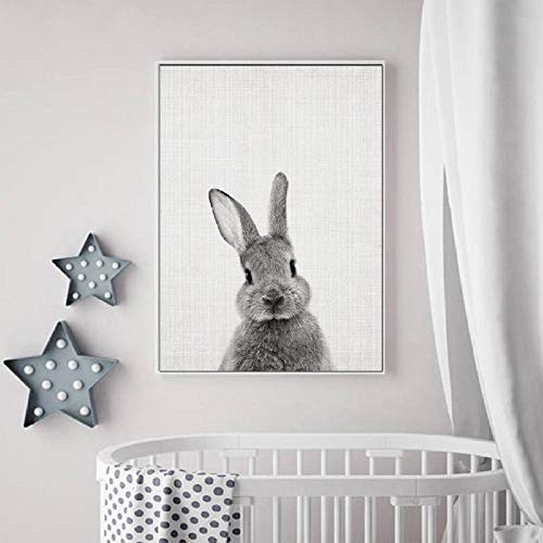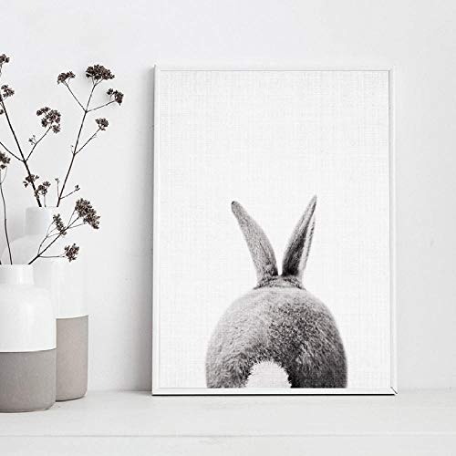 Nero Bianco Baby Animal Coniglio Coda Att Immagine Canvas, Art Print e Poster Nursery Bunny Canvas Painting, Kids Room Decor 50x70cmx2 No Frame