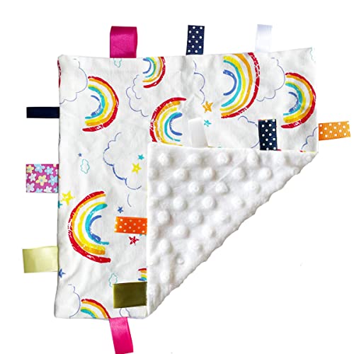 Bianco Arcobaleno bambino Tag Blanket - Cotone e peluche Coperta Etichetta Carino per i più piccoli, coperta morbida Taggy di sicurezza per il regalo del bambino