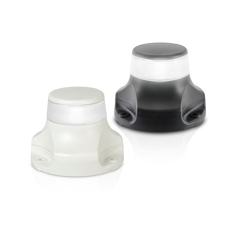 Fanali di testa d'albero per imbarcazioni fino a 50 metri. Lenti in Grilamide e cassa stagna IP67 in materiale antishock resistente a corrosione e raggi UV. Consumo ultra basso, precablati con cavi marini, dotati di circuito di protezione per picchi di tensione e inversione di polarità. Certificati MED96/98EC, CE(EMC), IMO-COLREG, USCG e ABYC. Rif. Originale 2LT 980 910-131