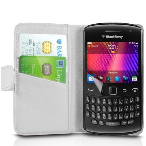 Bianco - Blackberry 9360 curva elegante in ecopelle Debito / Carta di Credito Slot Stile libro Wallet Custodia Cover Pelle & LCD Screen Protector Guard da * Aventus *