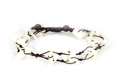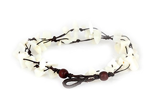 MGD - Bianco Bracciale Cavigliera Conchiglia - 2 Filo Bracciale Cavigliera - Bracciali Cavigliera Donna - Bracciali Cavigliera Della Pietra Preziosa - Bella Gioielli Fatti a mano - JB-0117A