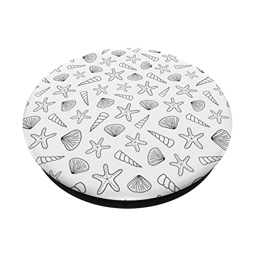 Bianco e nero conchiglia Doodle modello viaggio spiaggia arte PopSockets PopGrip Intercambiabile