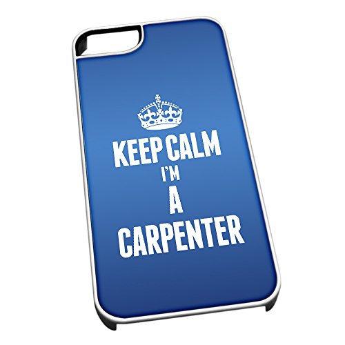 Bianco Cover per iPhone 5/5S Blu 2545 Keep Calm I 'm A Carpenter